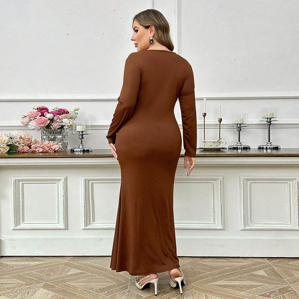 Plus Size Women Clothing Adult Lady like Woman Intellectual Dress Autumn Winter Simplicity Sexy Ankle Length Dress
